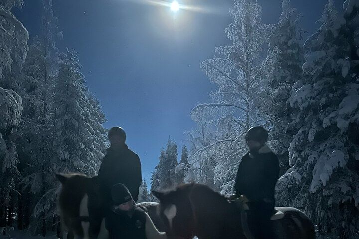 This night rider's dream is for you who are not afraid of the dark or enjoy riding in the moonlight. A wet forest in autumn or a snowy landscape in winter makes the imagination run wild. The silent fairytale forest at night hides stories that you cannot see or hear in daylight. Forest animals are not afraid of horses, so we can encounter in the dark with moose, foxes or hares. Maybe you'll meet Santa's reindeer?